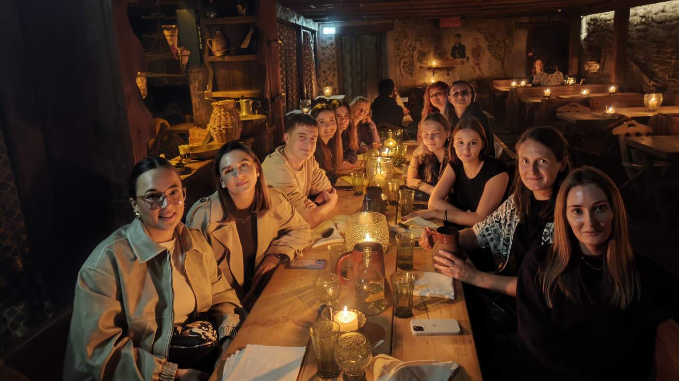 Evenings were filled with shared meals and laughter, from a festive dinner at the medieval restaurant Olde Hansa, with candlelight and live music, to a delightful Russian dinner featuring pelmeni in all their delicious varieties, and finally to spontaneous karaoke sessions that turned strangers into friends. These moments highlighted what Erasmus+ is all about: connecting people, sharing experiences, and celebrating European unity through personal encounters.