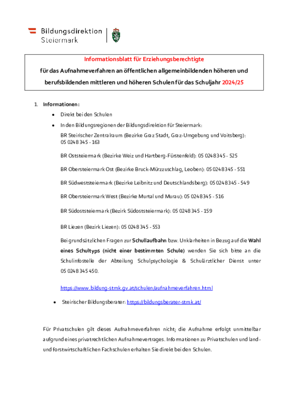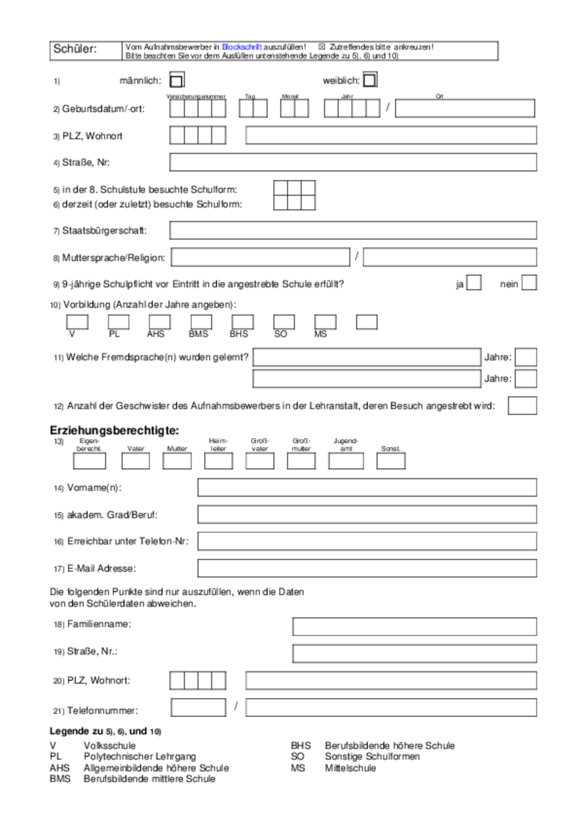 Anmeldeformulare und Informationsblatt für das Aufnahmeverfahren können nachfolgend ausgedruckt werden.